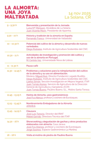 En este prometedor evento, se darán cita en el municipio de La Solana, una variedad de actores locales, nacionales e internacionales, unidos por su interés en el desarrollo de un cultivo que en las últimas décadas se ha ganado el dudoso honor de «leguminosa abandonada»: la almorta. El lugar de organización tiene un gran simbolismo esta vez, siendo Castilla La Mancha la principal región productora (actual e históricamente) de este cultivo que durante décadas ha permanecido, desafortunadamente, fuera de las recomendaciones dietéticas para humanos; su recuperación, sin embargo, cuenta con buenas razones estratégicas, agronómicas y nutricionales.